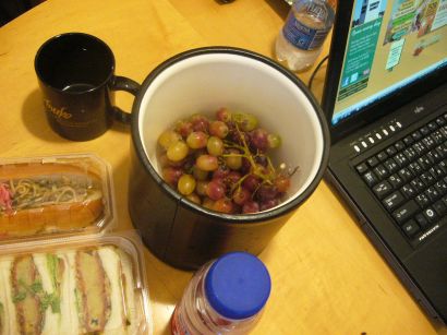 まずは朝食をとります 昨日買っておいたブドウやカリフォルニア産のフルーツ