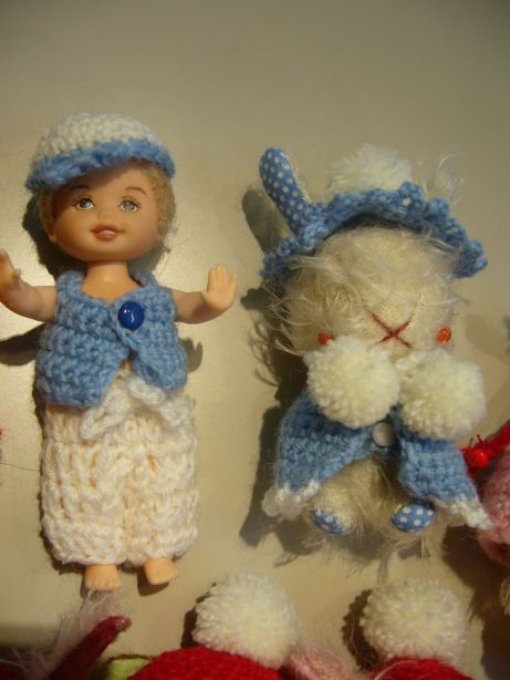 | ブルーの糸を持ち込んで アミアミしました トミーのお洋服も 頑張って 編んでみました |