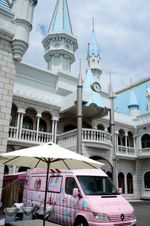 リカちゃんキャッスルの入り口には こんなにかわいいマイクロバスが置かれていて