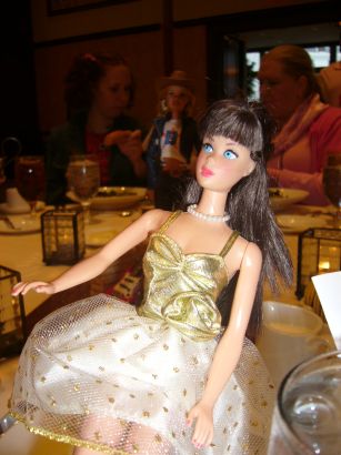 バービーも手づくりドレスを着て(Sawakoさま 作品)パーティーに出席です。