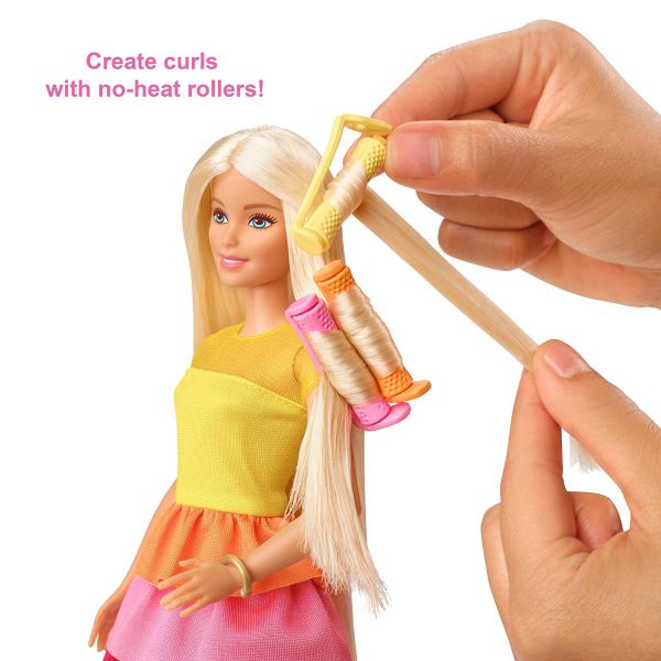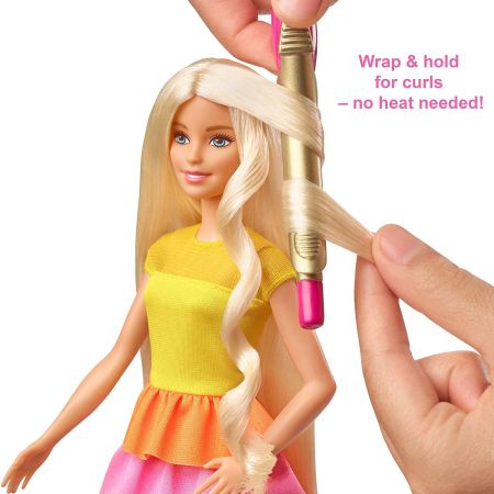 バービーのロングヘアを巻いて素敵なヘアアスタイルを作ってみ