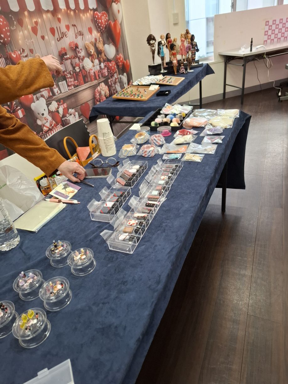 26年1月18日(日) ミニチュアファンにも人形ファンにも喜ばれる楽しいイベントになりました。 この季節に特化した ミニチュアイベント! いいですよねぇ こういうの 楽しかったです 上のチョコレートもcafeBAR-Bにて販売いたします こちらのコスメセットも cafeBAR-B にて販売いたします。 イベントに戻る TOPに戻る