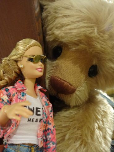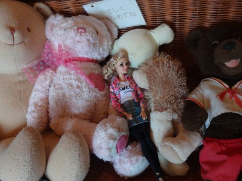 私はバービーをティディーの中に入れてあげました。 すぐに仲良くなれました(^^)