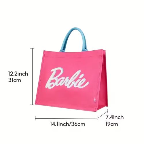 バービープリント付き、大容量、ショッピング・パーティーハンドバッグ、