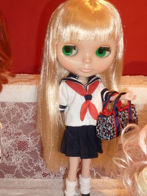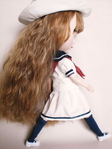 | これは私の作品です お帽子は匙ちゃんからの借り物 ブライスのヘアーは zoeさんが作ってくださいました あこがれのモヘアです。\(^o^)/ |