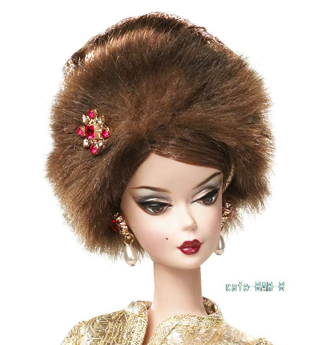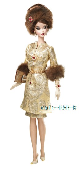 大胆なゴールドのスーツと魅力的なアクセサリーで自信に満ちたマドモアゼルー