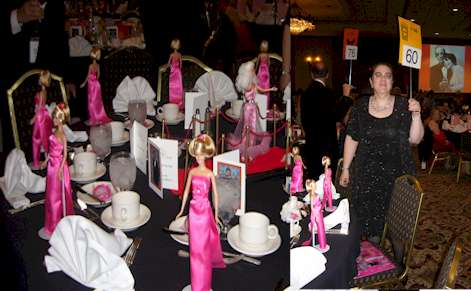 全てのテーブルで違うドールが飾られています それぞれのデザイナーさんの名前もかかれています