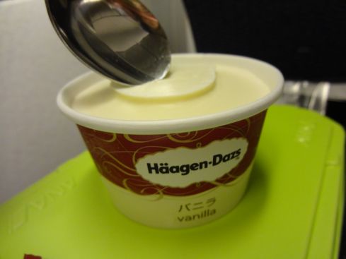 デザートはアイスクリームが付きますが 目いっぱい凍っていて