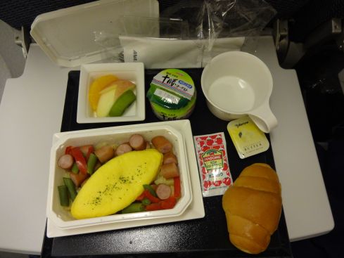 毎回同じ内容の機内食ですが バービーの分も持ち込んでいます