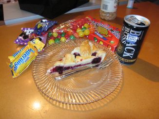 今日のスゥィーツは ダークチェリーパイです そして アメリカ土産の お菓子がたっぷりと |