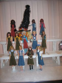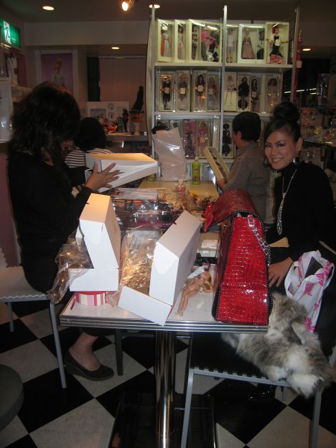 手前の赤いバッグは手づくり 下の部分にドールを入れることができます