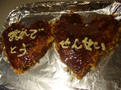 | 生徒さんからのプレゼント ハート形のお好み焼き