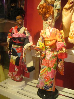 | 上品な綸子ふうの生地は 人形の着物にすると まるで付け下げのようです