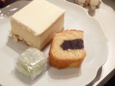 今日のスィーツは チーズケーキ 差し入れの お菓子添え (^-^) |