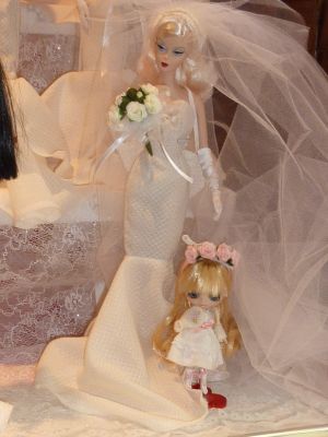 | バービーのゴージャスな ベールは自作 ものすごく似合っていてゴージャスです プチブライスもご同伴(^-^) |