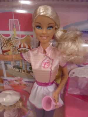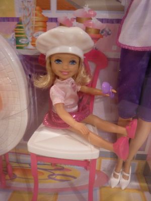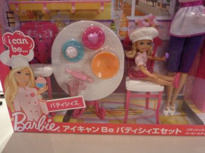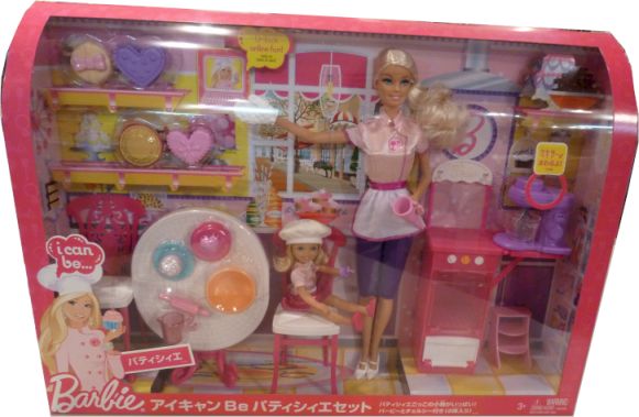 パティシエセットはバービーとチェルシーちゃん、テーブルとイス2脚、オーブンや小物もたくさんついてお得!
