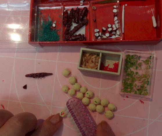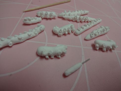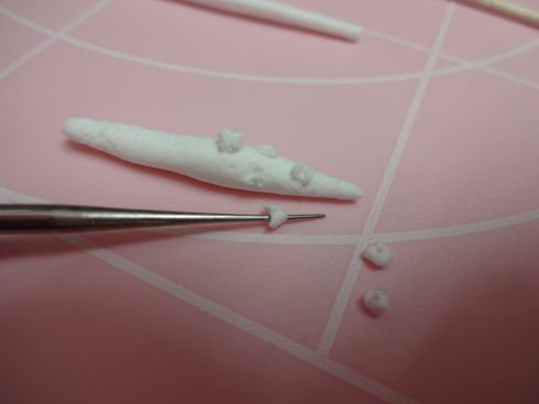 樹脂粘土を細長くしていぼいぼを接着材で付けて行きます