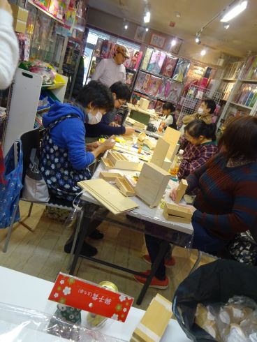 本日のワークショップはチェスト又は カップボードを選べます 11歳の悠愛ちゃんの初参加!もあります ご両親と一緒で楽しそうです(^^) |