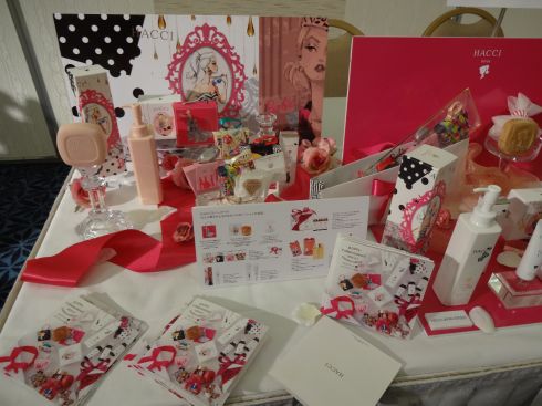 2016年4月から発売される HACCI社のソープなどのコスメコーナー