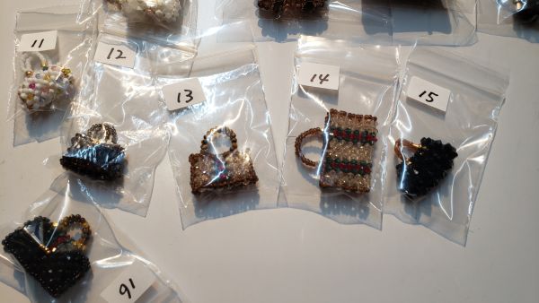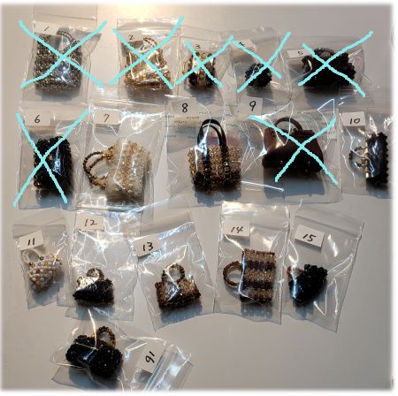 ビーズの手作りバッグ 作家さんが自分の為に作ったものなので お安く リサイクルにて販売いたします ¥1200から¥1800 |